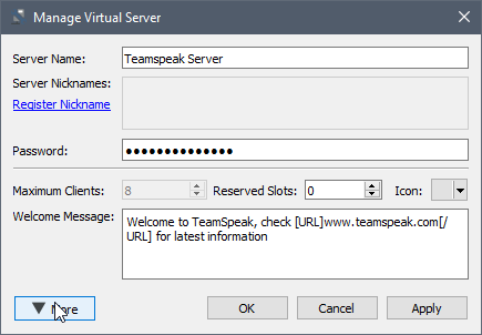 Once you have gone into the Virtual Server settings, click the more button and then select the Misc tab.